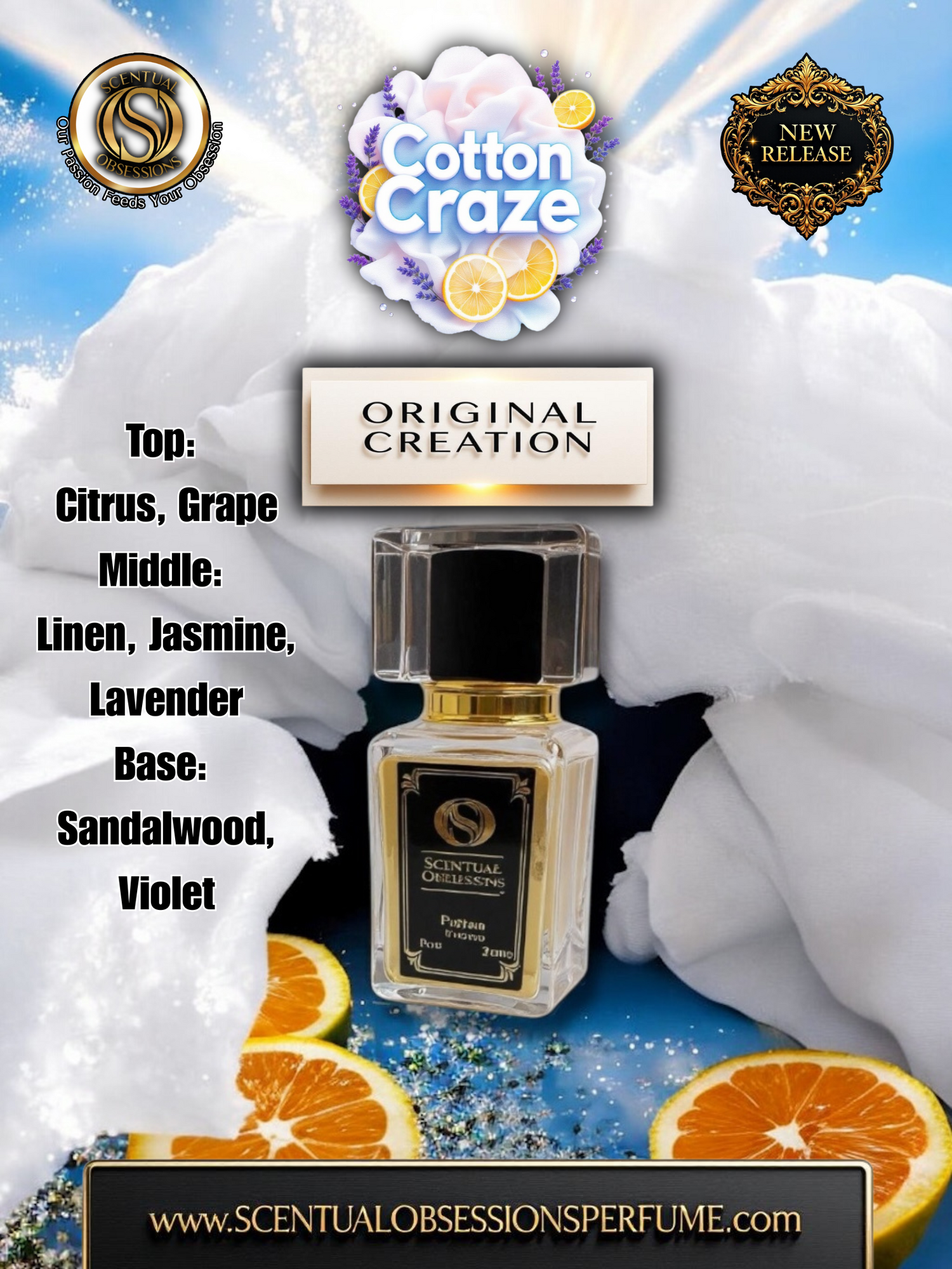 Step into the ultimate clean escape. Cotton Craze wraps you in the fresh, addictive scent of sun-dried linens kissed with bright citrus, soft florals, and a smooth whisper of woods. One spray and you’re surrounded by pure, irresistible freshness that feels like a perfect laundry day—elevated to luxury.