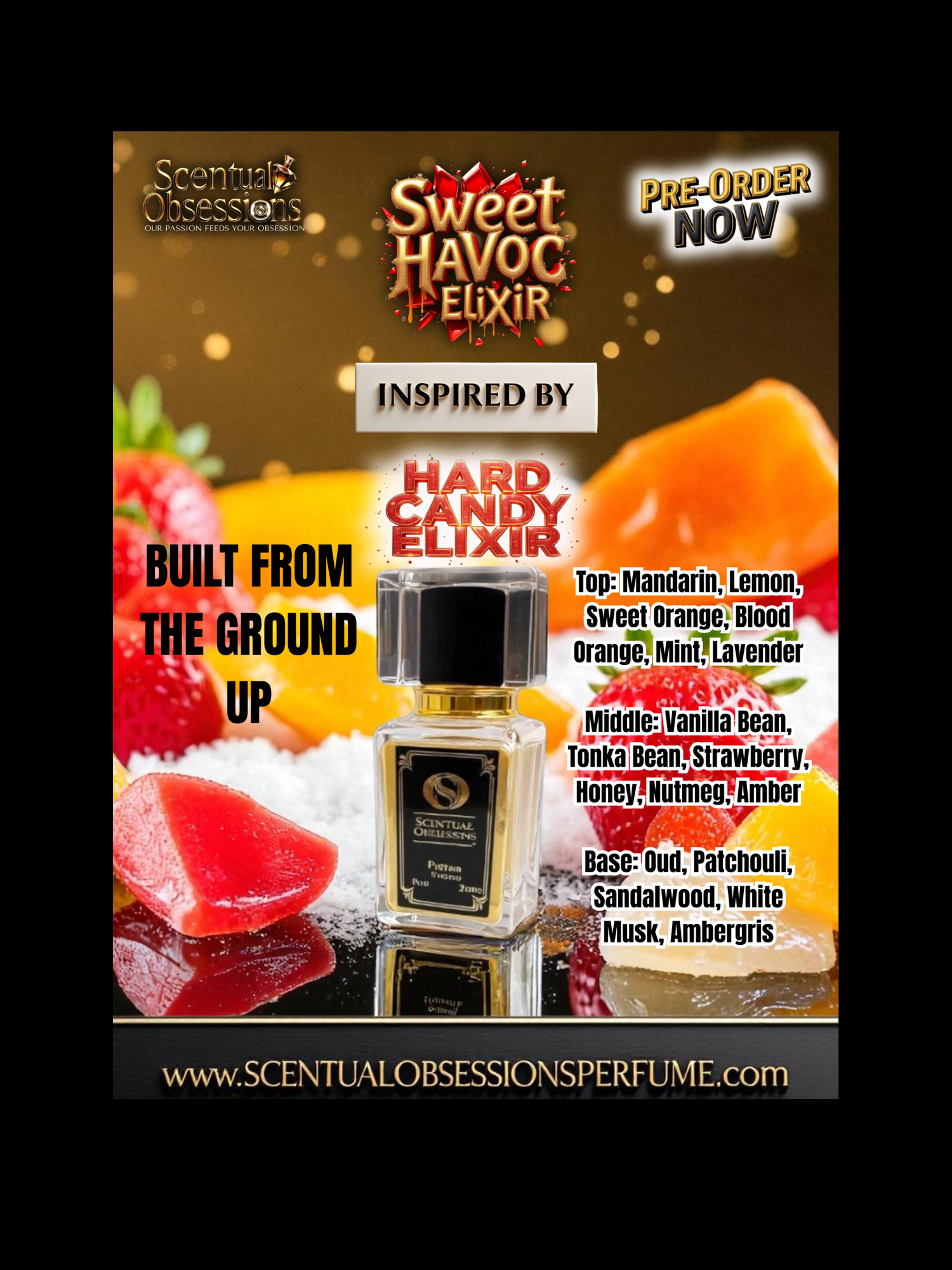 Sweet Havoc Elixir is our inspired version of ATH Hard Candy — a bold gourmand fragrance that fuses playful sweetness with niche sophistication. This is our formula, built from the official note breakdown, crafted to mirror the addictive sweetness and smoky depth of the original without having the original Fragrance analyzed, we came up with this formula on our own.