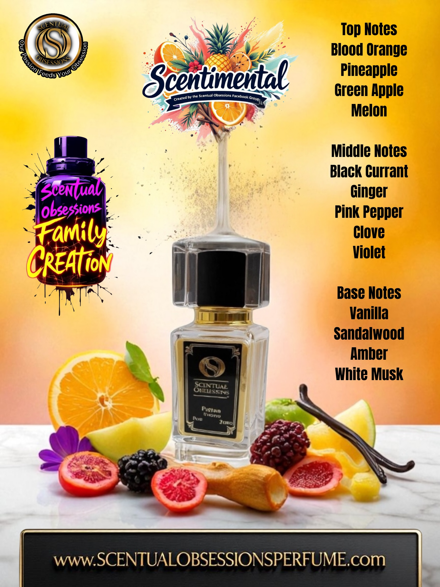Crafted note by note by our Scentual Obsessions Facebook Family, Scentimental is more than a fragrance — it’s a community creation. This vibrant original blends juicy fruits, warm spices, soft florals, and creamy woods into a scent that feels personal, expressive, and unforgettable.
